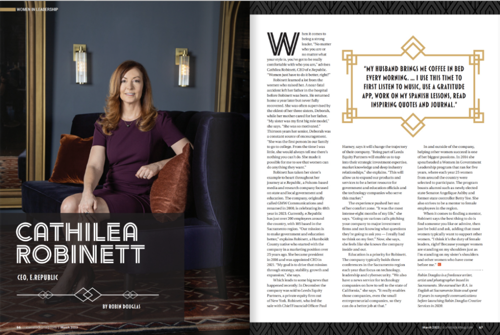 March 14, 2023 | e.Republic CEO, Cathilea Robinett, has been included in Comstock magazine’s annual Women in Leadership issue for 2023. This special issue highlights local women leaders who are making a difference in their careers and communities.